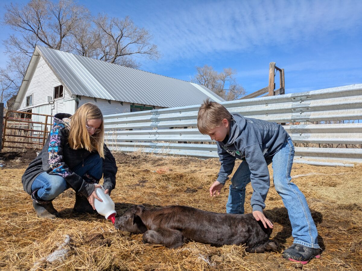 Calving went without any blizzards or major hiccups. Both of Elly’s cows managed to calve in the same day giving her a one day calving window. Both children got to help me with pulling calves this year. Gus wasn’t so fond of it. Elly got to be a pro. She would glove up and have everything ready to go as soon as we had the cow in the chute. It was much easier with the pro along to help.