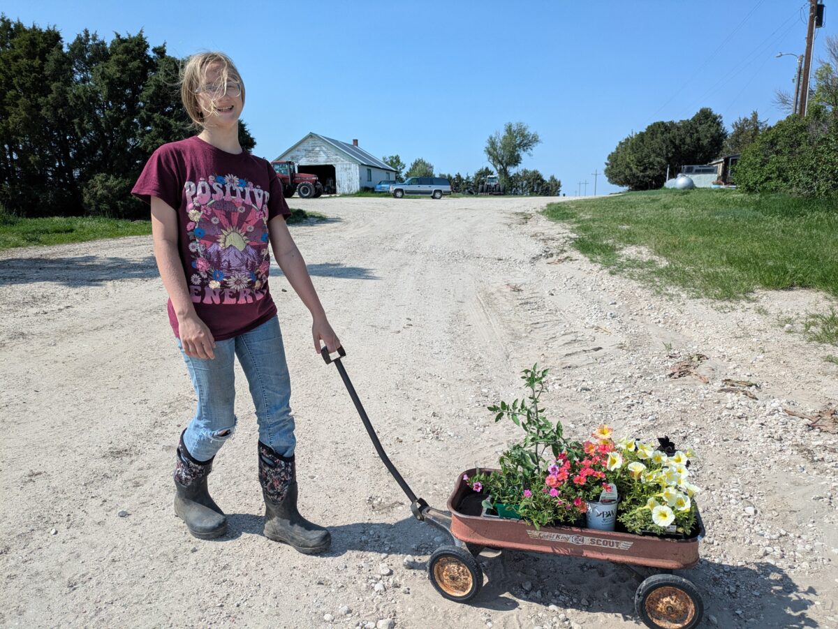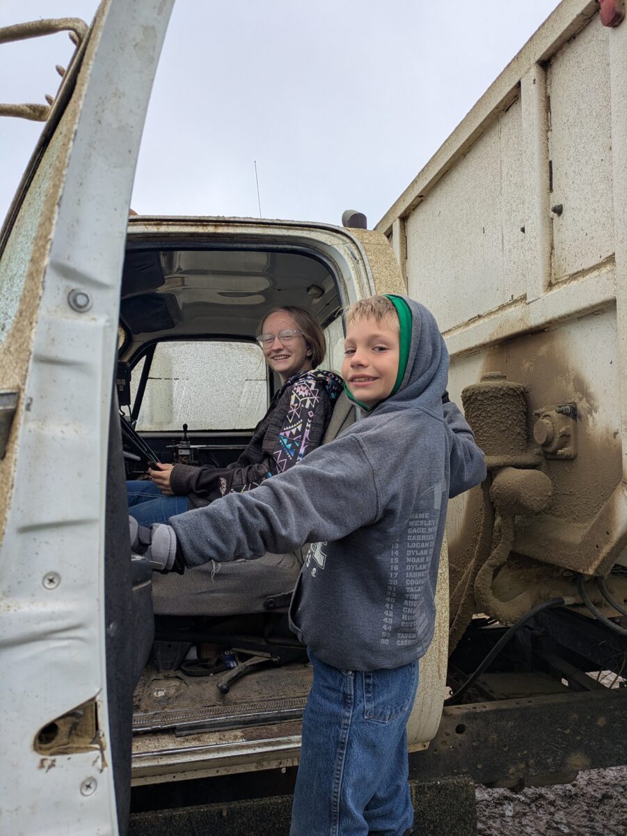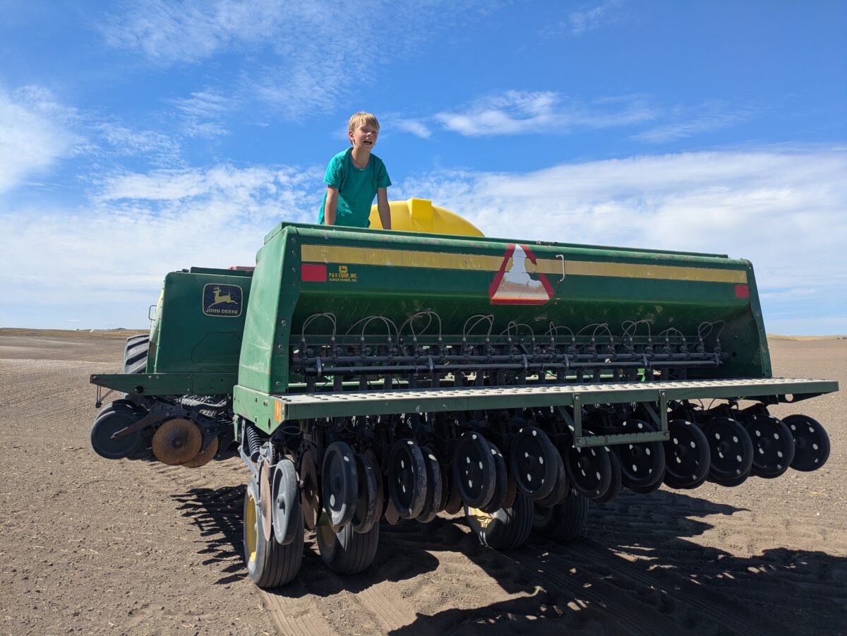 The whole family pitched in again when it came to getting the wheat planted. It took all of us to get the machinery over to the wheat fields. I drove the persnickety old stick shift seed truck. Larel brought the tractor and drill. The kids followed behind with the pickup so we’d have a ride home. Gus is great help with all things that need driven, tractor or pickup. He became a pro at filling the planter and would like to be allowed to drive the tractor. He’ll have to wait a little longer for that.