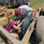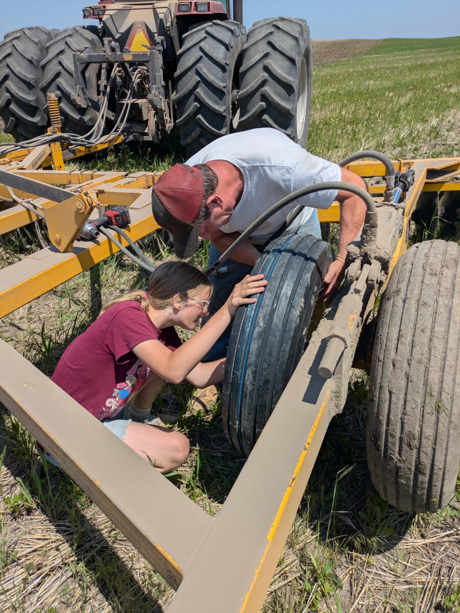 After working well all summer the pivots decided they had had enough and began to break down constantly. The children work best (work hardest that is, without being distracted constantly) when they are separate. So Elly was chosen as pivot repair assistant while Gus got to go help me during those times. She became quite skilled at helping remove tires and replacing pivot parts. She’s not going to grow up as one of those girls who don’t know how to do the work around the place!