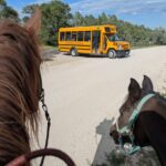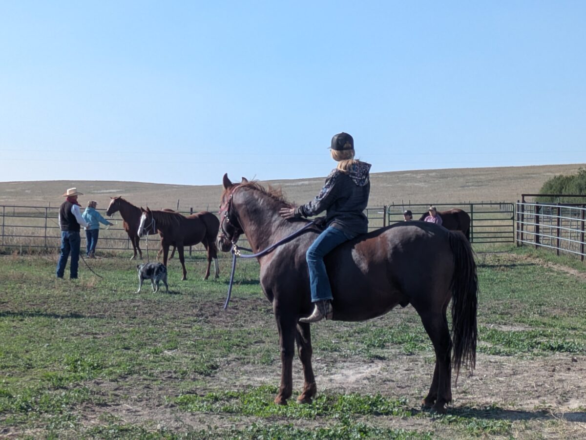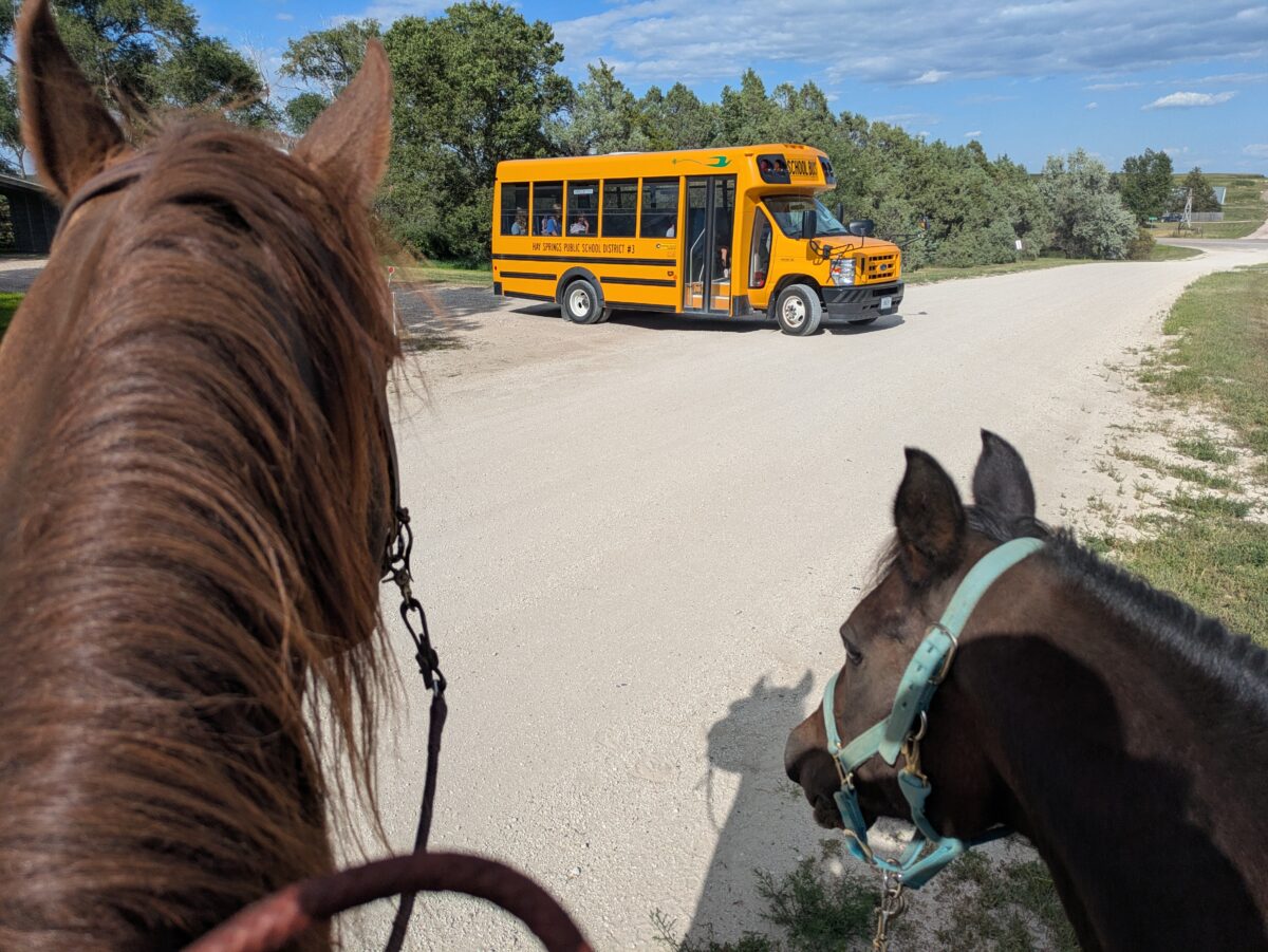School starts way too early in August. But, with enough horses for all of us now not only could we all go for rides together but it was much easier to pick kids up from the bus on horses. After the first time when I got to very carefully carry Elly’s backpack with her school computer in it hooked over my saddlehorn I learned to let them know I would be picking them up horseback and to leave breakable things like computers at school.