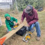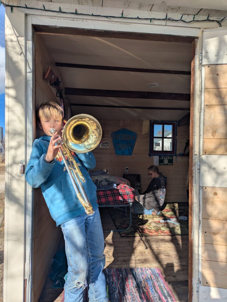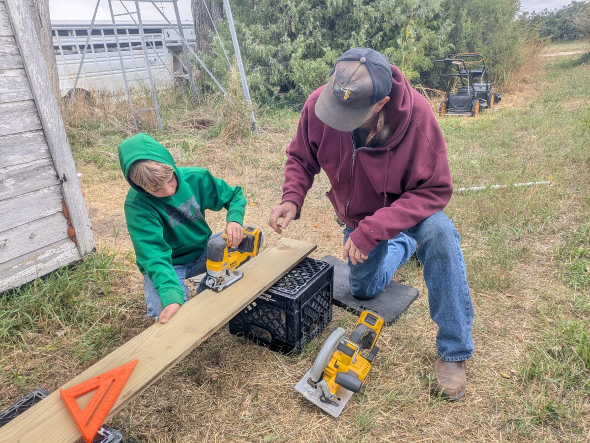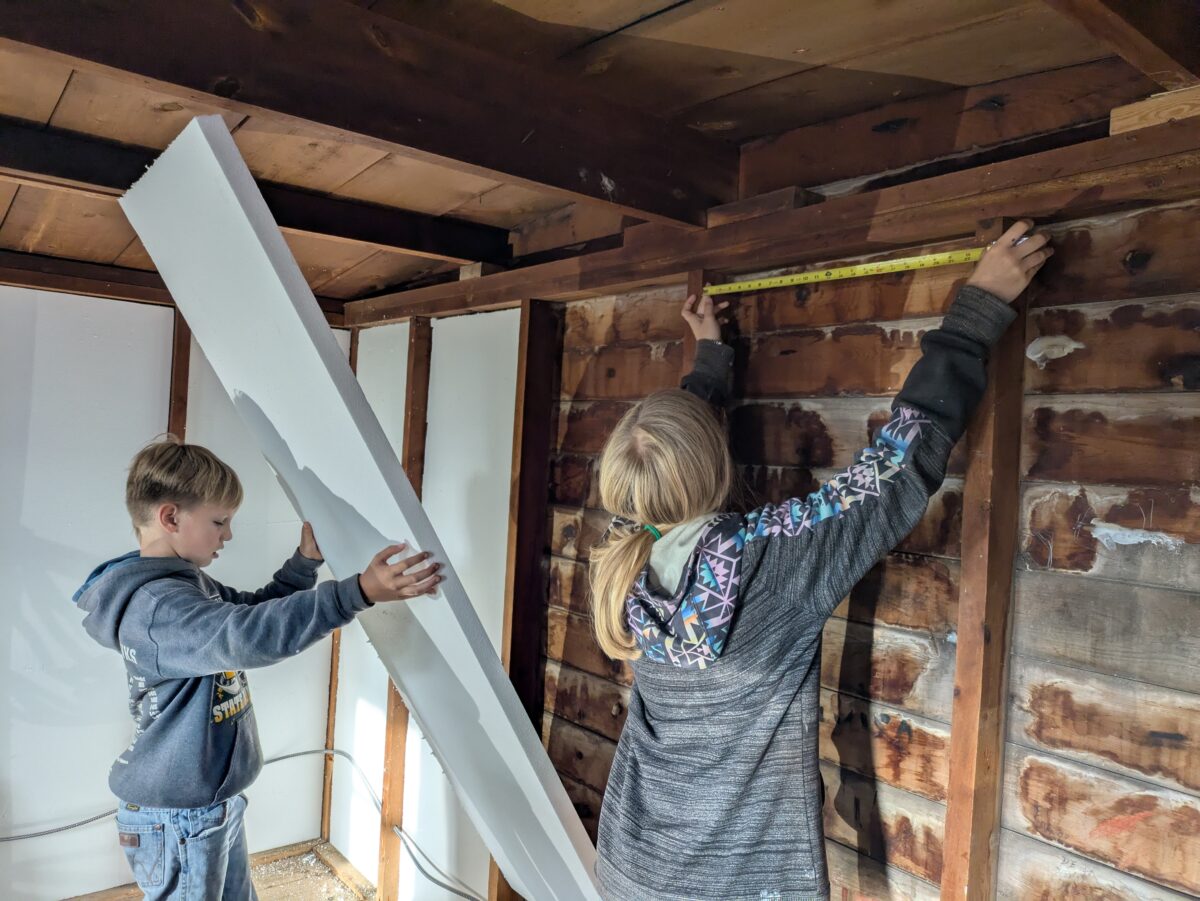 The day after the trick training clinic my dad came to stay with us. He spent the month of October remodeling a cabin we have had sitting in our backyard for years now. The kids have been complaining about needing rooms of their own. Our house is tiny and doesn’t belong to us. There was no where inside to move them to and no adding on. So we kicked them out. With dad’s help the cute but bare cabin became a cozy little cottage just the perfect size for a room. Both children got to learn about wiring and carpentry as we worked along side him to get the job finished. Snug, warm, and now darling he made it just perfect.