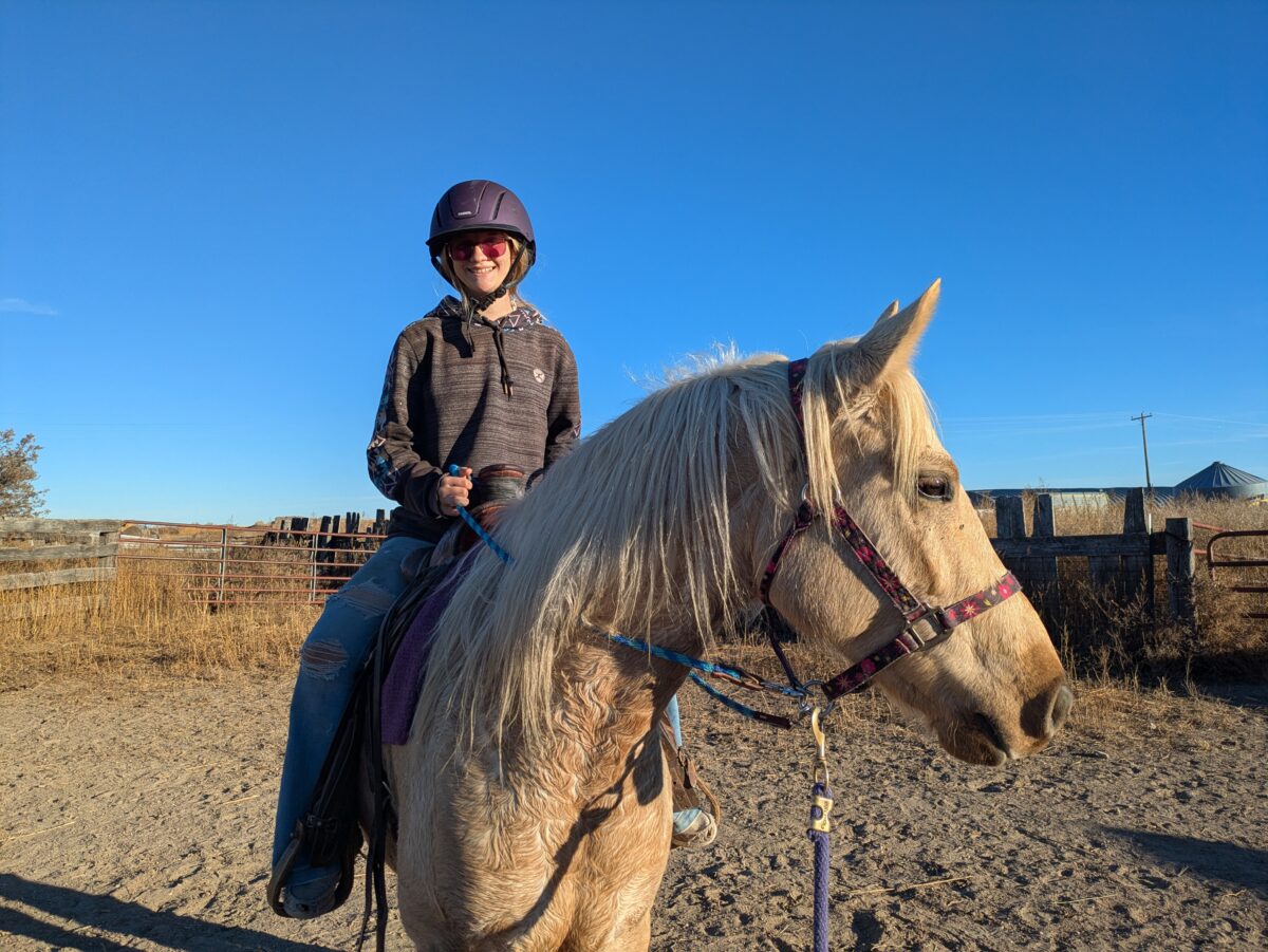 With some nice weather I managed to get a few rides in on Sunshine. He was doing so well that Elly even got to get on him. It’s fun to see a horse with so little riding safe enough for a kid to hop on.