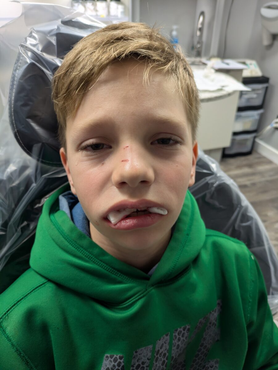 Gus has not been having a fun December. He got his nose bit by a neighbors dog then the very next week had to go in and have four teeth pulled. Baby teeth that weren’t coming out properly. They still hurt to have pulled! Then the next week he caught a door handle to the face. Luckily it only resulted in a fat bloody lip, no more teeth knocked out. But he is having a tough month!